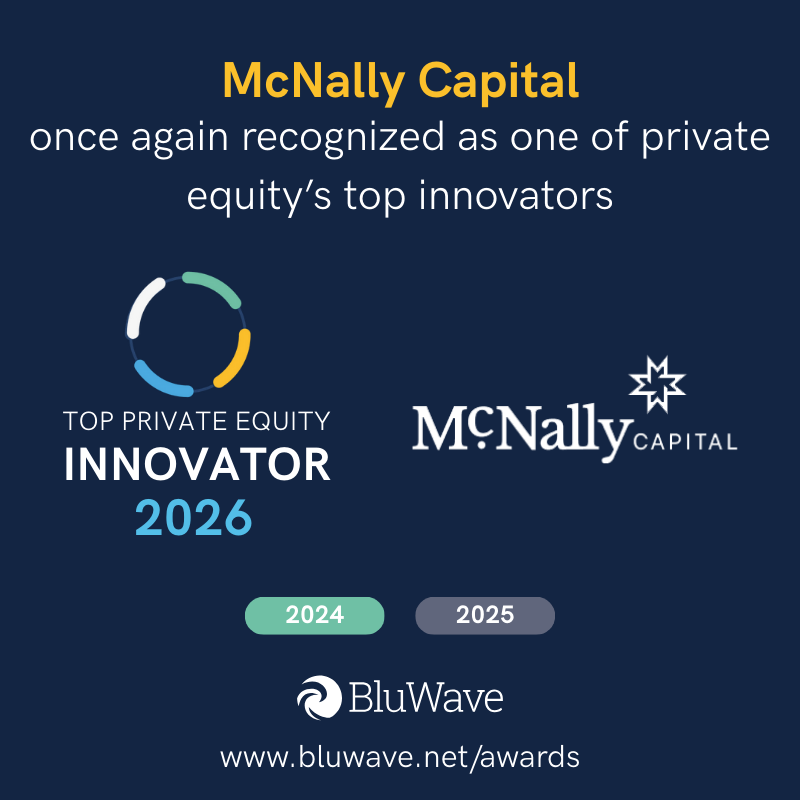 We are excited to share that BluWave has recognized McNally Capital as a 2026 Top Private Equity Innovator! This award recognizes McNally Capital, for the third year in a row, among the top 2% of PE firms for our innovation across proactive due diligence, transformative value creation, modern private equity firm operations, and corporate citizenship*.